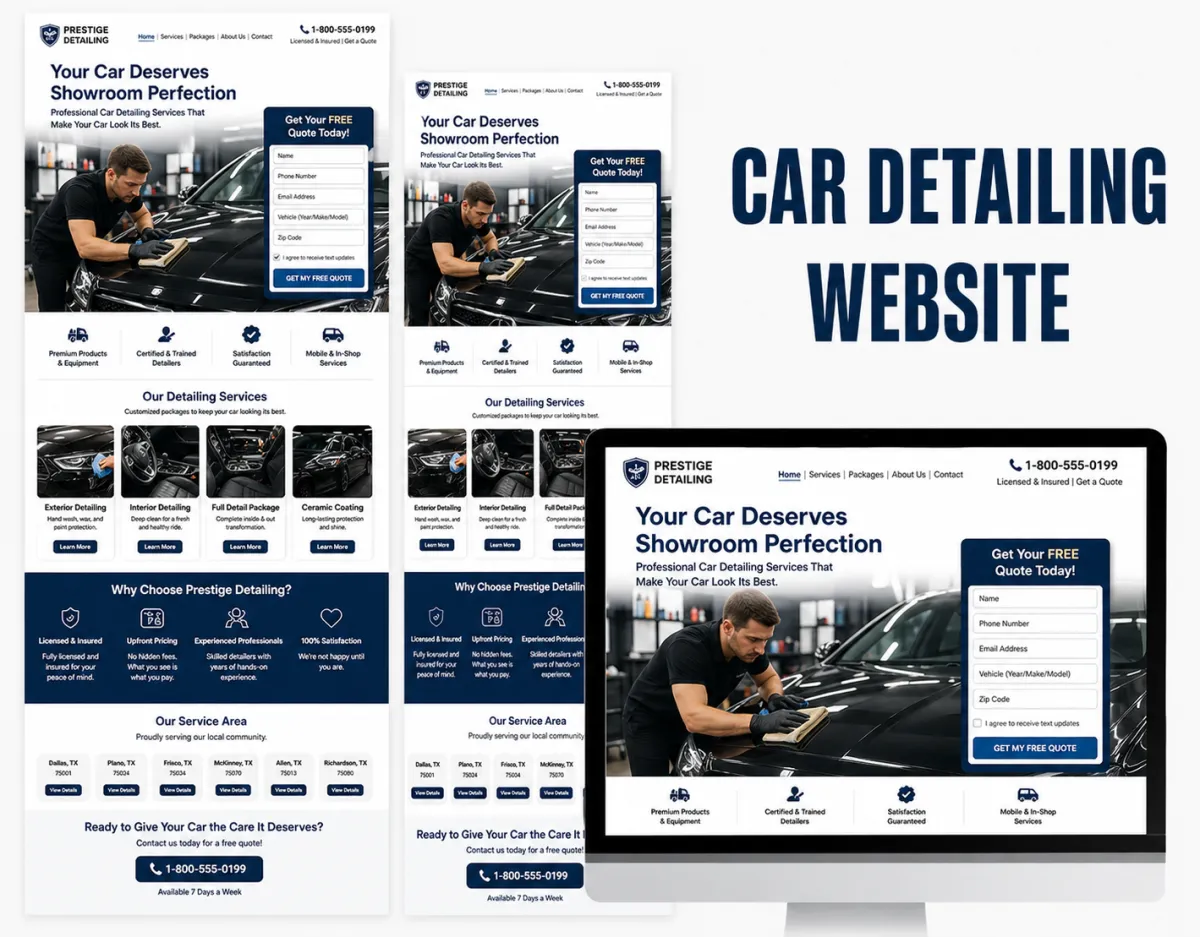 High-intent lead generation and booking websites with payment integration, designed to capture car detailing appointments.